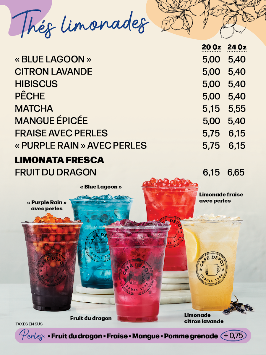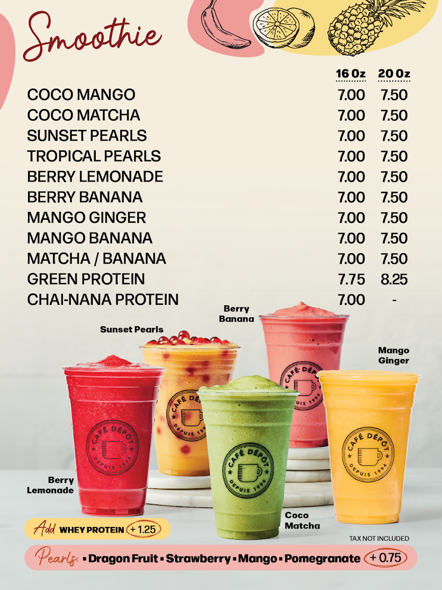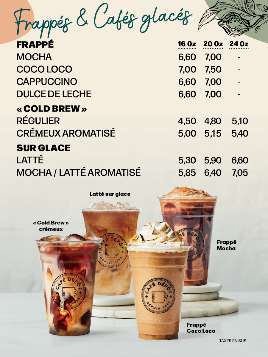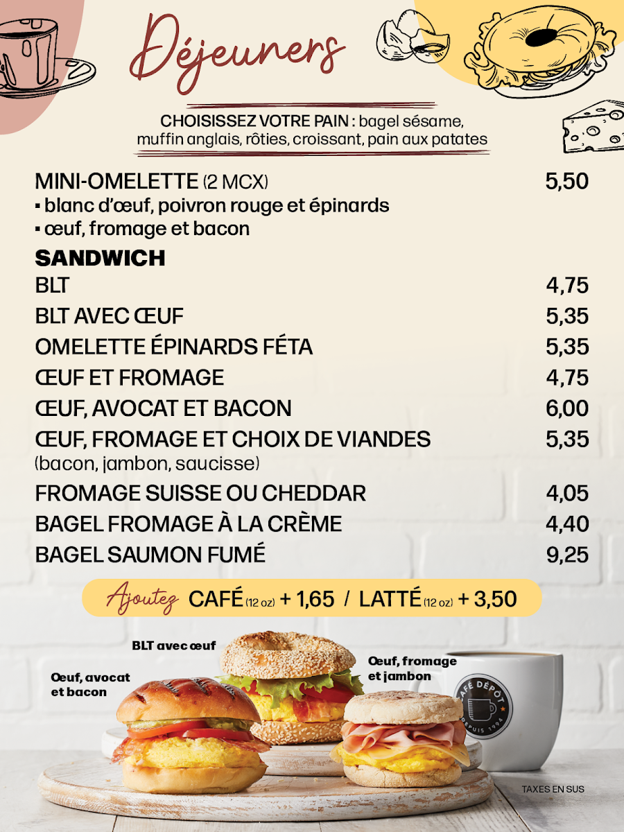 Welcome to Café Depot 718 Chemine de la Grande-Côte! This charming café, located in Boisbriand, QC, offers a delightful menu featuring a variety of comforting breakfast sandwiches, refreshing beverages, and delectable sweets.