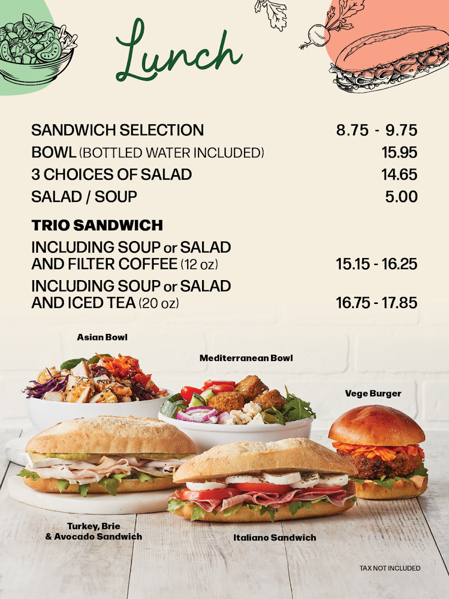 For those looking for a quick and satisfying meal, the café's Trio sandwich options are a perfect choice. Additionally, the café offers a selection of hot and cold coffees, teas, and refreshing Aqua Fresca beverages.